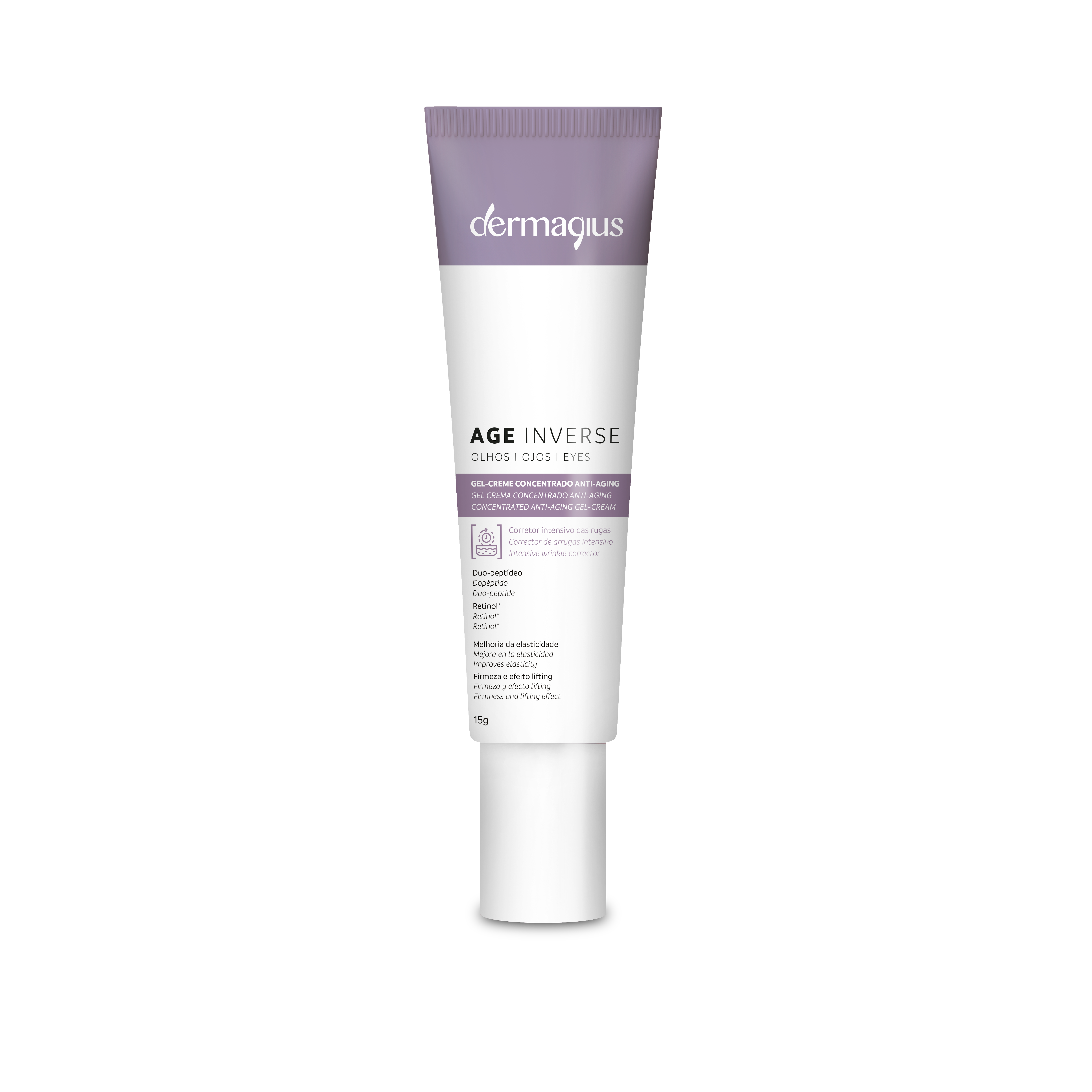 O Age Inverse Olhos é um corretor anti-aging intensivo, com um aplicador metálico para massajar e reduzir rugas e linhas no contorno de olhos. Possui ação tensora, hidratante e iluminadora, para além da sua fórmula exclusiva que estimula a produção de colagénio, promovendo firmeza, elasticidade, melhoria da textura da pele, e aspecto rejuvenescido.